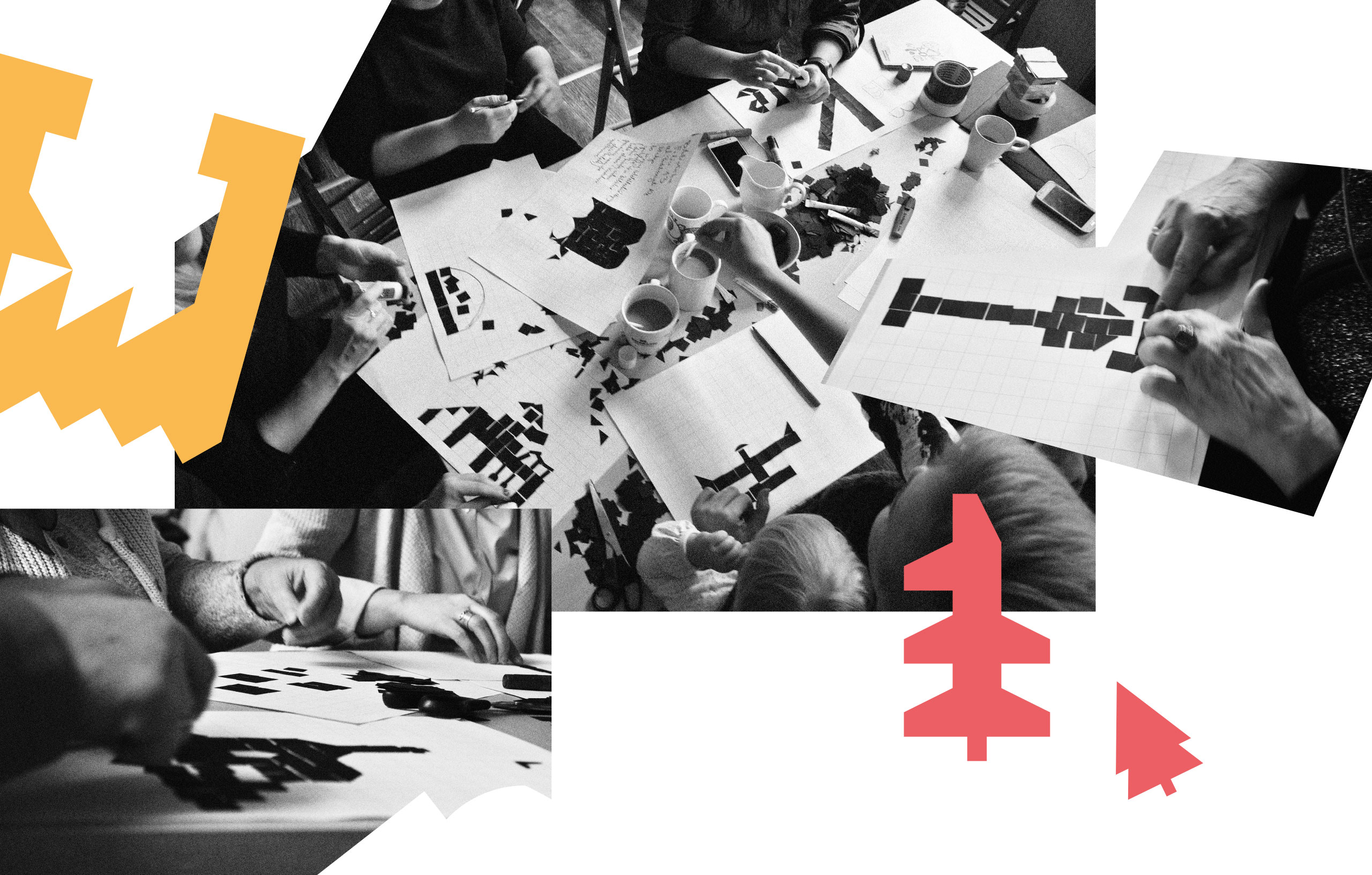 Pierwszym etapem realizacji projektu były warsztaty, w których uczestniczyli mieszkańcy Gdyni. Otrzymywali arkusze z prostą siatką oraz kwadratowe moduły, za pomocą których wyklejali syntetyczne znaki graficzne symbolizujące wybrane miejsca w okolicy. Następnie projekty ikon były wiernie dygitalizowane i wkomponowywane w mapę.
