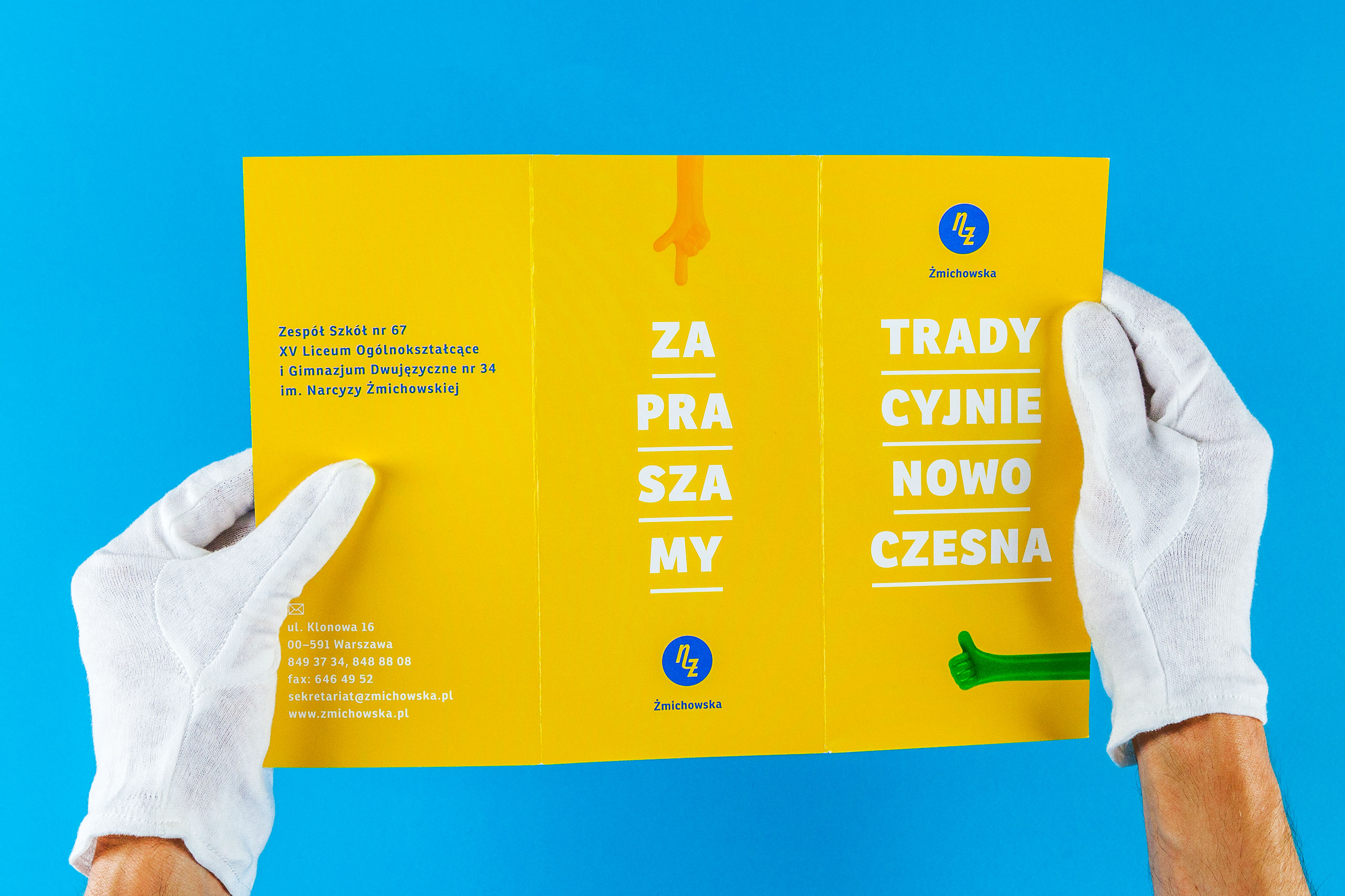 Pracując nad odświeżeniem wizerunku szkoły przygotowaliśmy również materiały promocyjne: ulotkę oraz spot, bazujące na sesji zdjęciowej ze specjalnie zaprojektowaną scenografią.